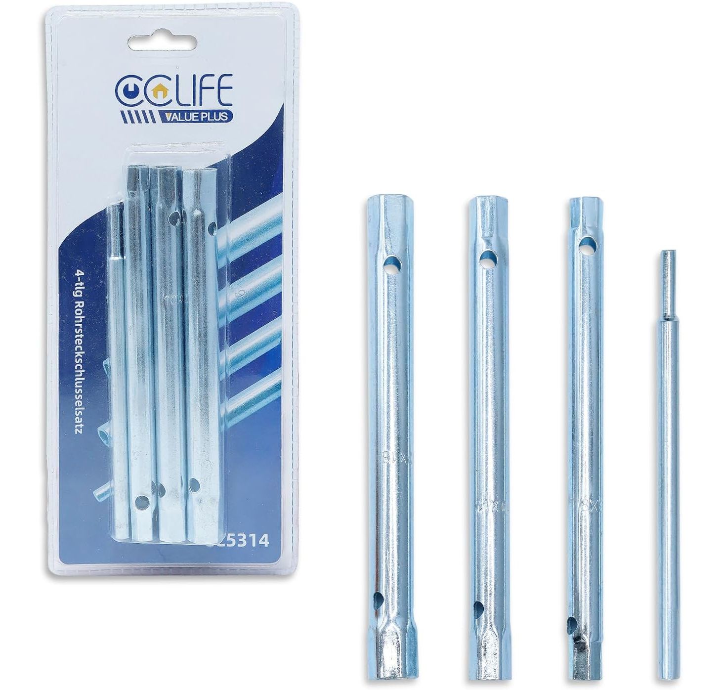 The CCLIFE tubular socket set offers versatility and performance for a variety of applications. Made from hardened tool steel and finished with a matte chrome finish, these keys are robust and resistant to wear. The set contains three hexagon tubular box wrenches in sizes 8 x 9, 10 x 11 and 12 x 13 mm, which are ideal for working on taps, cars, spark plugs and plumbing applications. Each key is clearly labeled to easily identify the size, ensuring precision and efficiency in your work. With this set you are optimally equipped to work safely and effectively even in hard-to-reach areas.