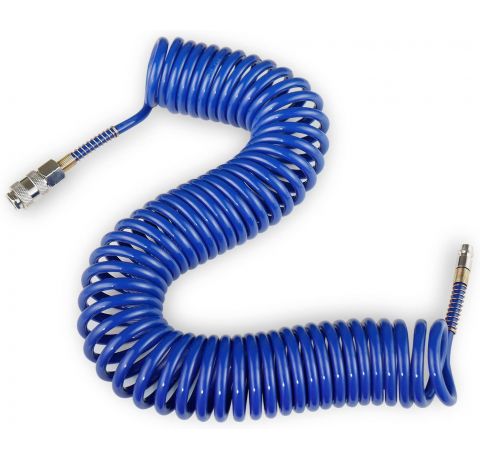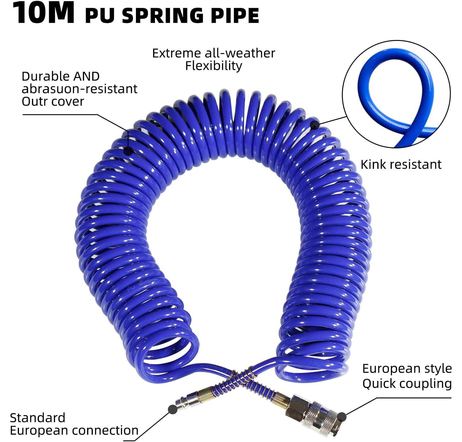 CCLIFE 10 m PU Air Hose with Spring Air Hose PU Wrapped Air Hose for Air Line or Liquid Transfer with Curvature Restrictor Quick Coupling and Plug