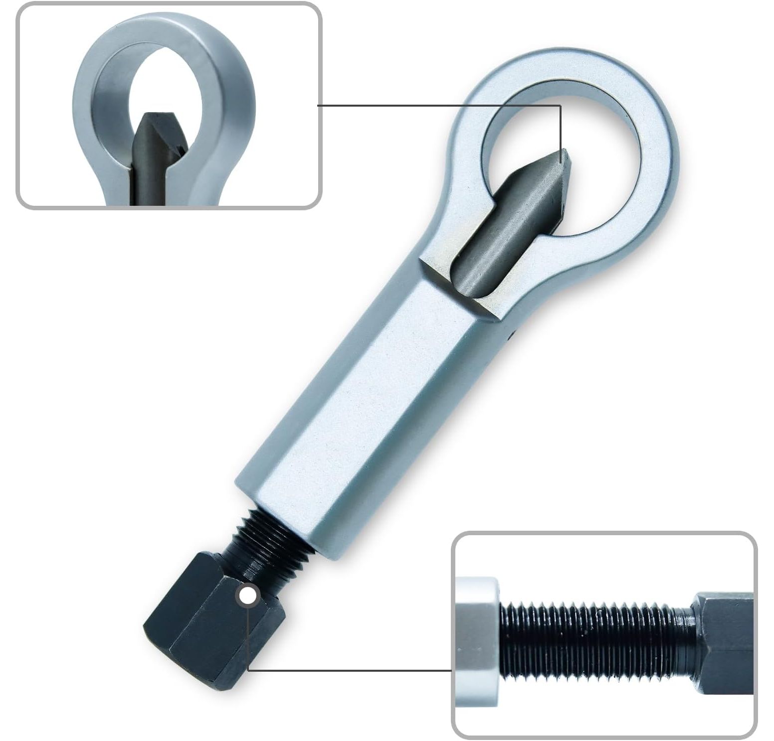 - Simply turn the nut splitter screw to work on the target nut.