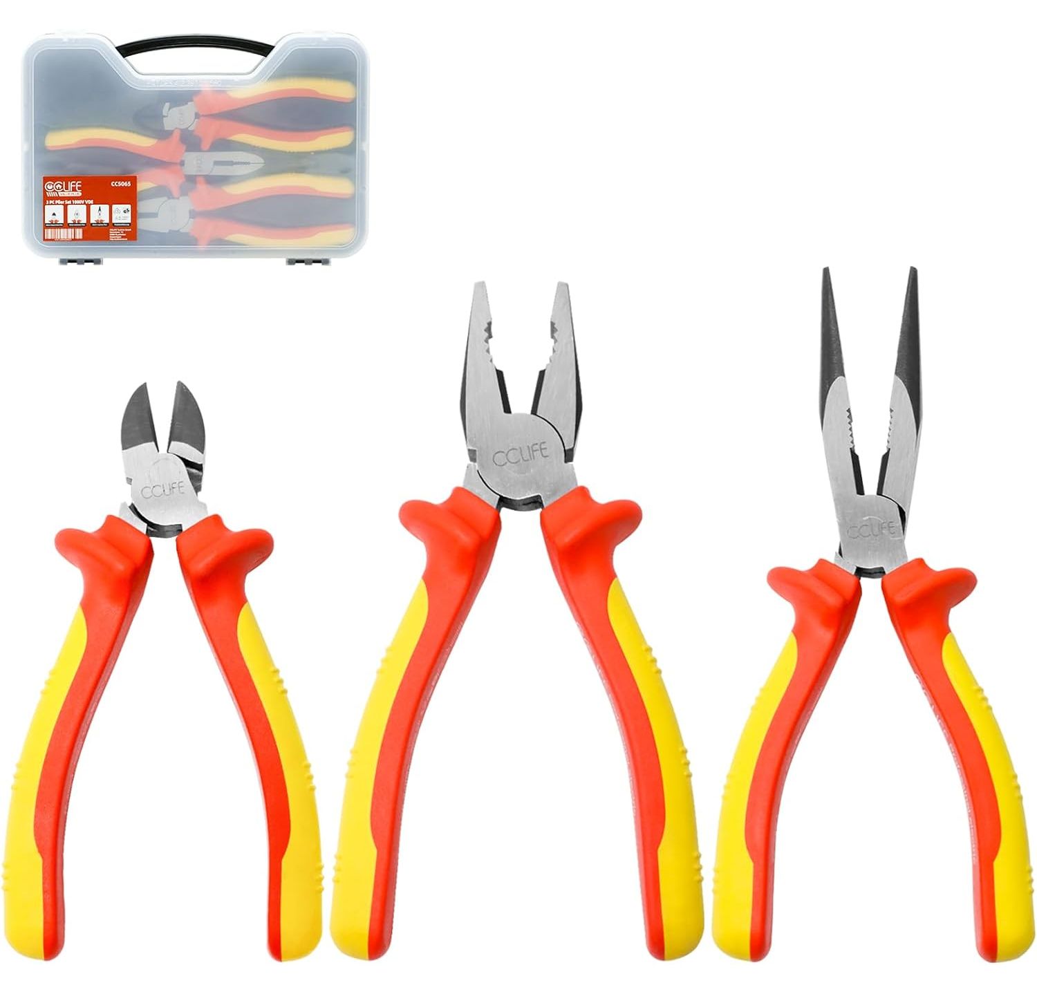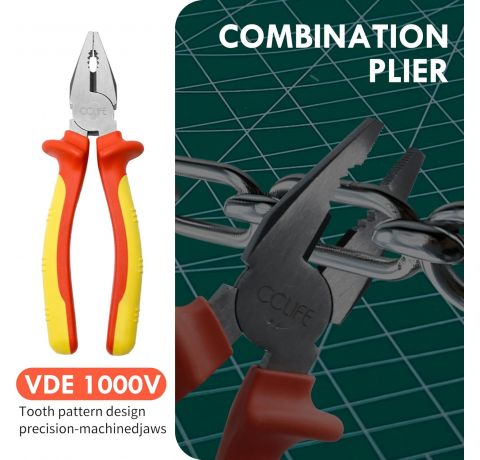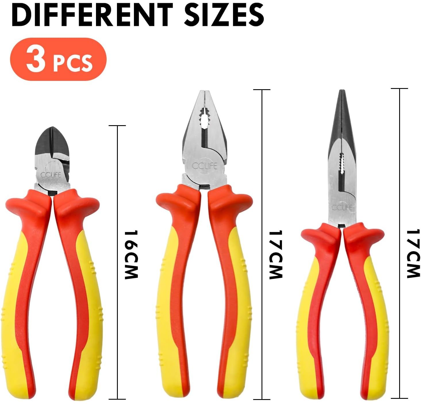 CCLIFE VDE Pliers Set 1000 V 3-Piece Universal Combination Pliers 170 mm + Flat Nose Pliers 170 mm + Side Cutters 160 mm Pliers Set Electric for Household, Workshop Tool Electric Tool