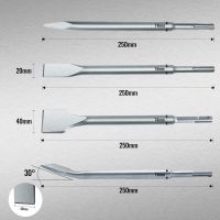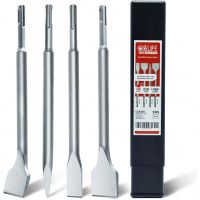 4-teiliger Meißelsatz SDS: mit Spitzmeißel, Flachmeißel und 2 Fliesenmeißeln (gerader Meißel und 30°angewinkelt)...